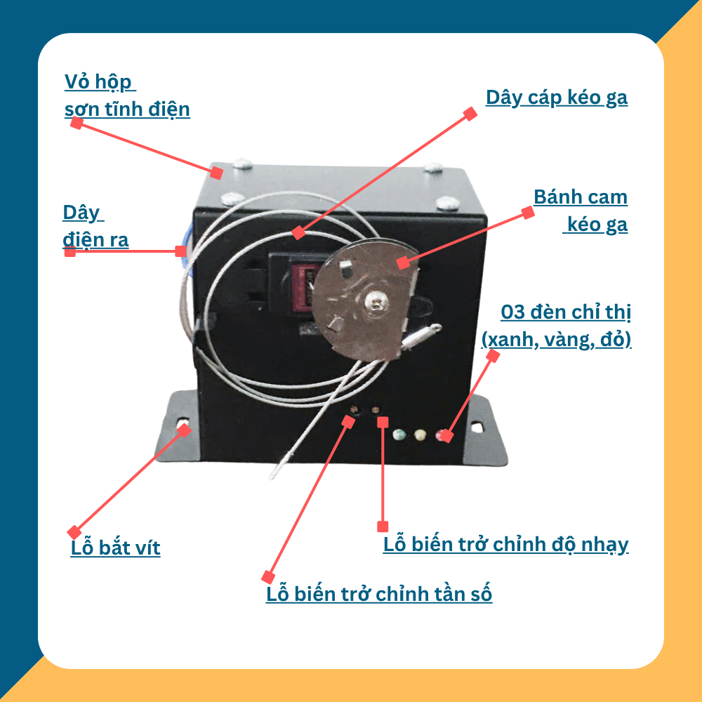 Bộ điều tốc ga tự động (bản thông dụng) sử dụng cho các loại máy phát điện chạy động cơ diesel có tác dụng giữ ổn định tần số đầu ra, tự động điều chỉnh tốc độ động cơ phù hợp với nhu cầu phụ tải tiết kiệm nhiên liệu chạy máy.
